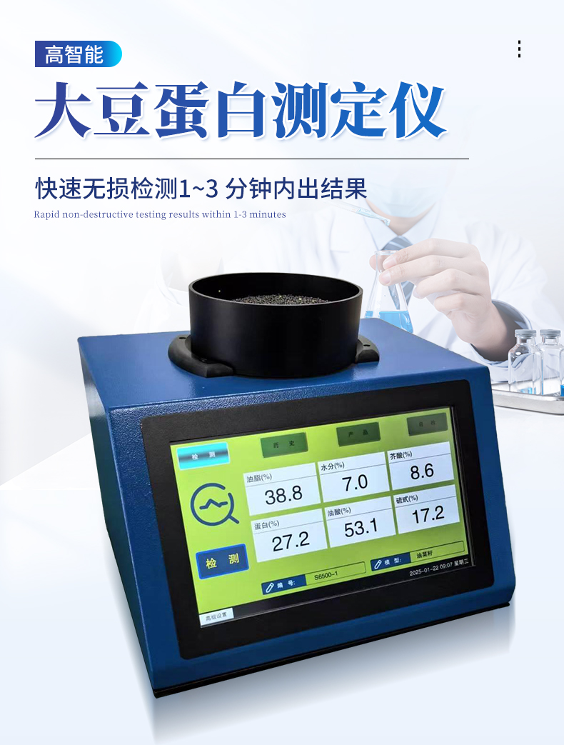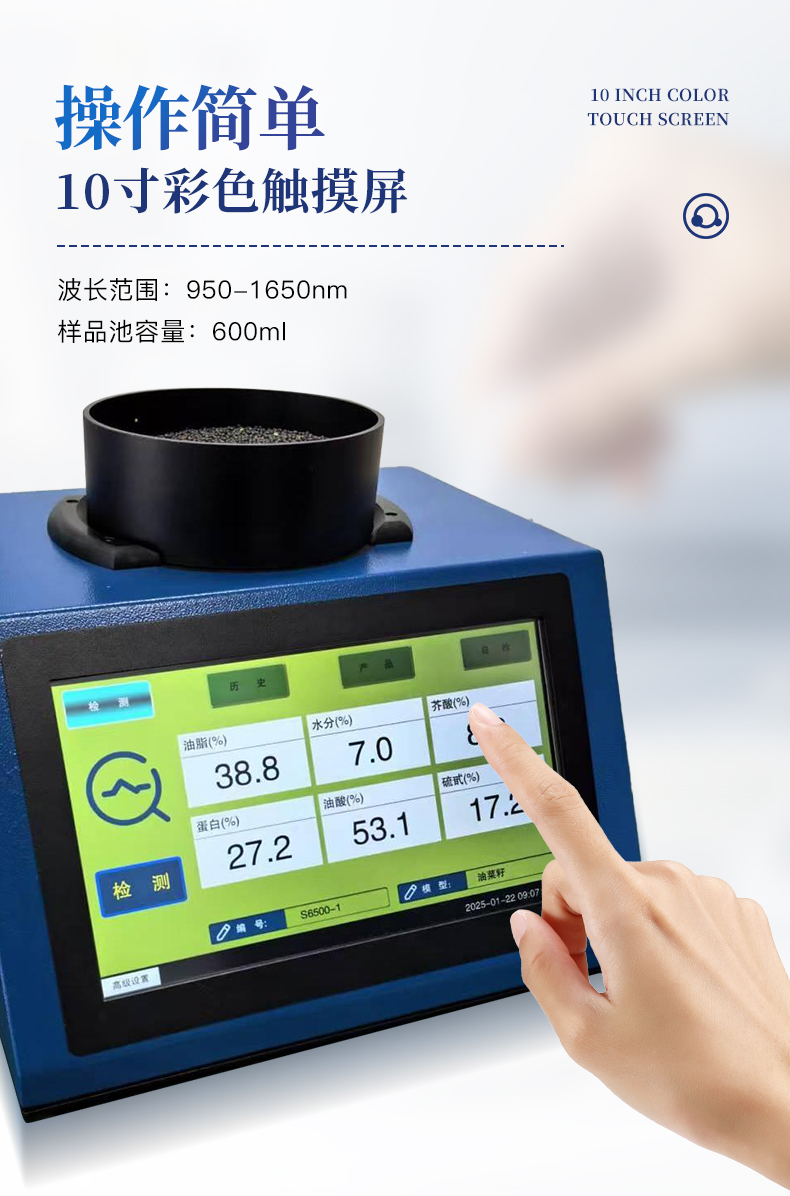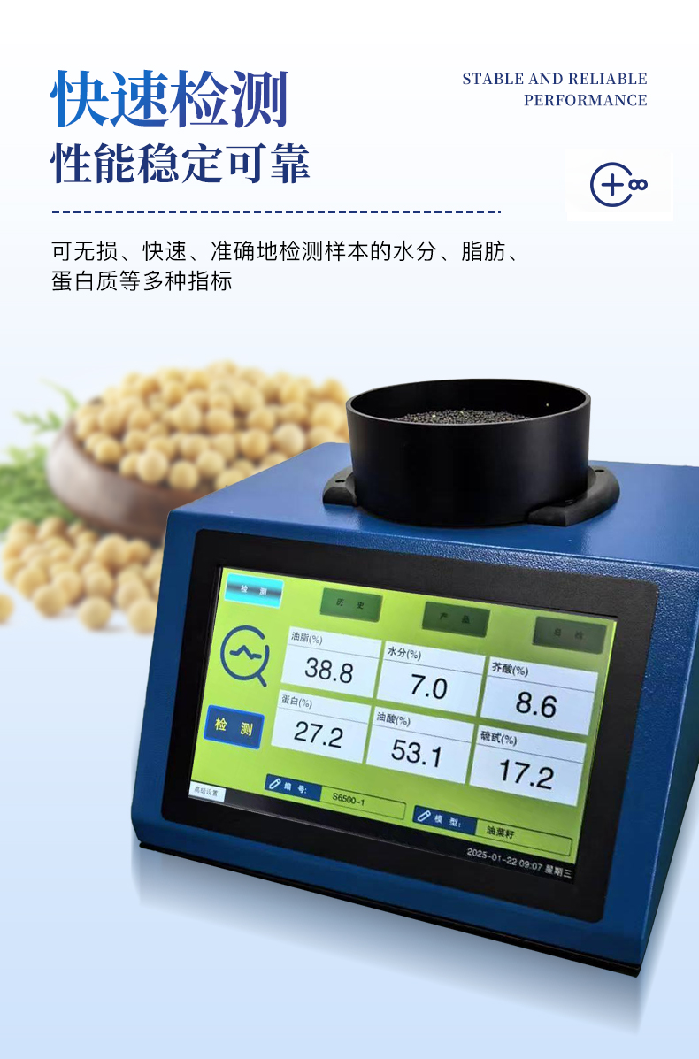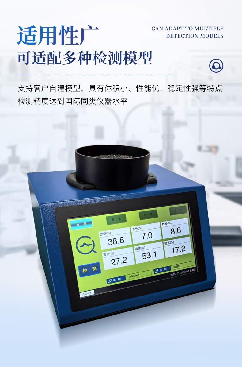 近紅外光譜分析儀,是針對原糧、食品、飼料等行業開發的專用 檢測設備,可無損、快速、準確地檢測樣本的水分、脂肪、蛋白質等多種指標。