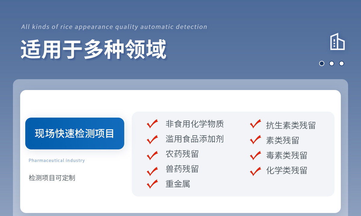可現場快速檢測底料中非食用化學物質、濫用食品添加劑、農藥殘留、獸藥殘留、重金屬、抗生素類殘留、激素類殘留、毒素類殘留、化學類殘留等多項目的快速定性定量檢測。如底料中的山梨酸鉀、苯甲酸、甜蜜素、安賽蜜、黃曲霉B1等快速檢測。 該多功火鍋底料檢測儀為集成化食品安全快速檢測分析設備,廣泛應用于食藥監局、衛生部門、底料加工、工商執法等單位使用。
