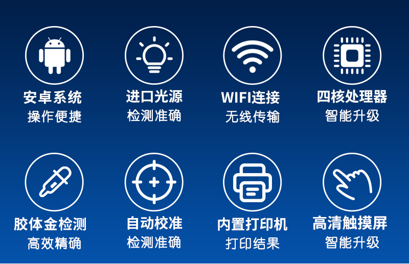 | 七寸彩屏全觸摸輸入,支持手寫功能支持WIFI,支持3G、4G; | 支持金標(biāo)項目檢測定性檢測,結(jié)果可顯示樣品陰陽性結(jié)果 | 內(nèi)置智能操作系統(tǒng)軟件內(nèi)置大容量存儲數(shù)據(jù)庫,可隨時分類查詢已測項目; | ☆數(shù)據(jù)可局域網(wǎng)和互聯(lián)網(wǎng)數(shù)據(jù)上傳,可構(gòu)建食品安全監(jiān)管系統(tǒng)平臺,支持LIMS 系統(tǒng),內(nèi)置USB接口,可擴展外設(shè); | ☆自動精準(zhǔn)識別CT線位置,糾錯范圍可達±3mm; | 支持金標(biāo)項目檢測定性檢測,結(jié)果可顯示樣品陰陽性結(jié)果; | 檢測響應(yīng)時間:< 3S | 讀數(shù)精度:CV<1% ; | 12V低壓電源供電,便攜式設(shè)計,適合野外,車載或室內(nèi)等各種場所使用 |