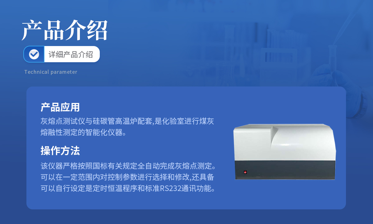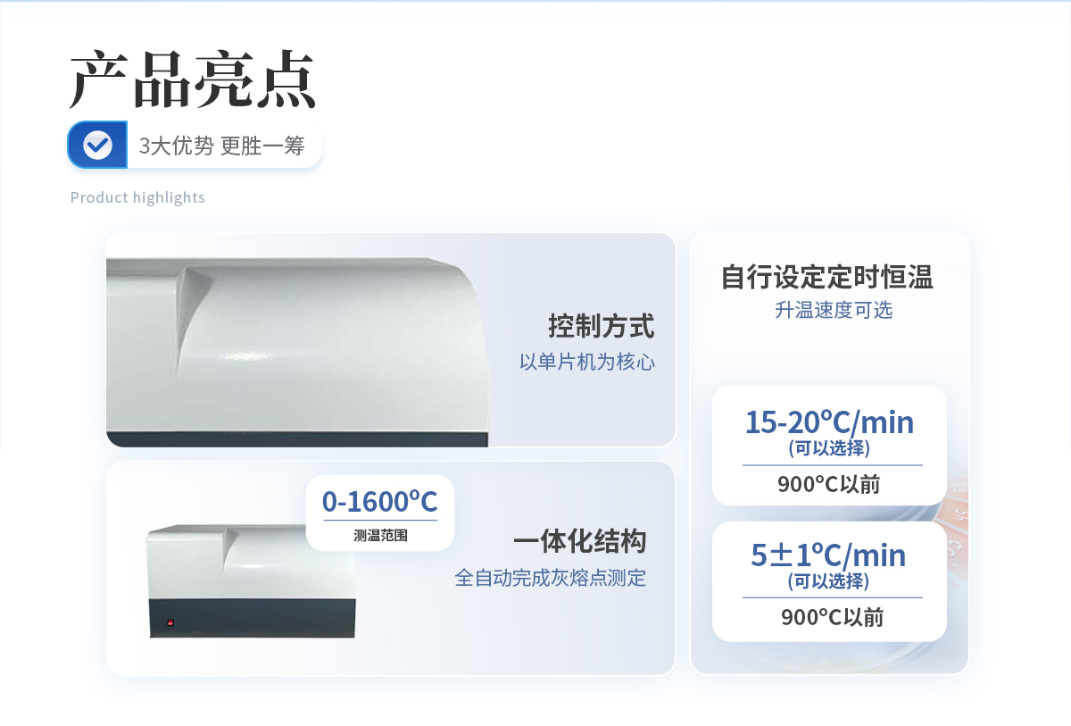 灰熔點測試儀與硅碳管高溫爐配套,是化驗室進行煤灰熔融性測定的智能化儀器.該儀器嚴格按照國標有關規定全自動完成灰熔點測定.可以在一定范圍內對控制參數進行選擇和修改,還具備可以自行設定是定時恒溫程序和標準RS232通訊功能.