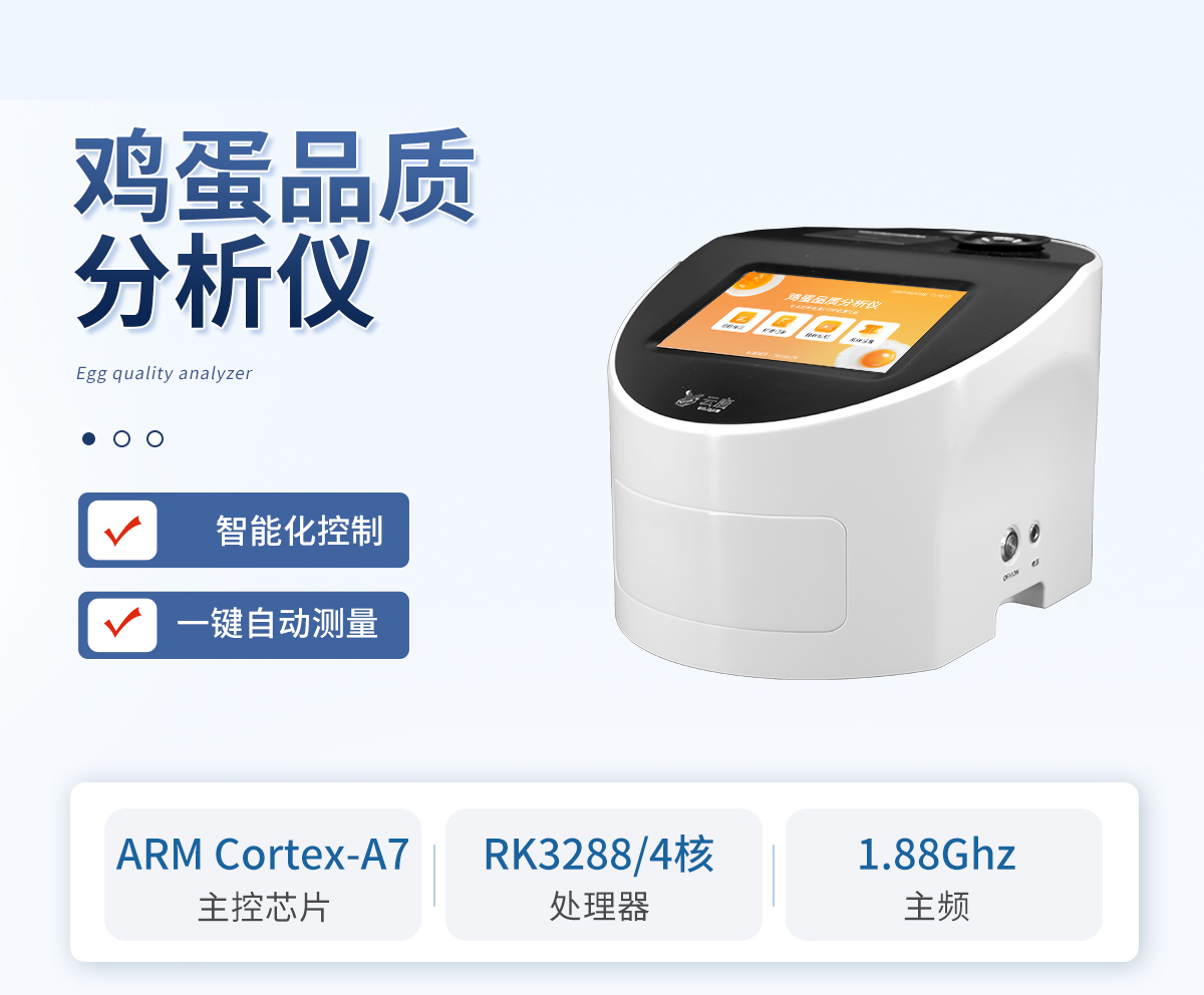 產品介紹: 隨著消費者對食品安全問題的日益關注,雞蛋品質檢測成為了保障雞蛋質量、維護消費者健康權益的重要手段。我司生產的雞蛋品質檢測儀可通過專業的檢測項目和方法,進行雞蛋的品質檢測和分析。 雞蛋品質分析儀技術指標:雞蛋測重,蛋白測高,蛋黃測色,哈夫值顯示,蛋黃高度等,可進行雞2026-04-13