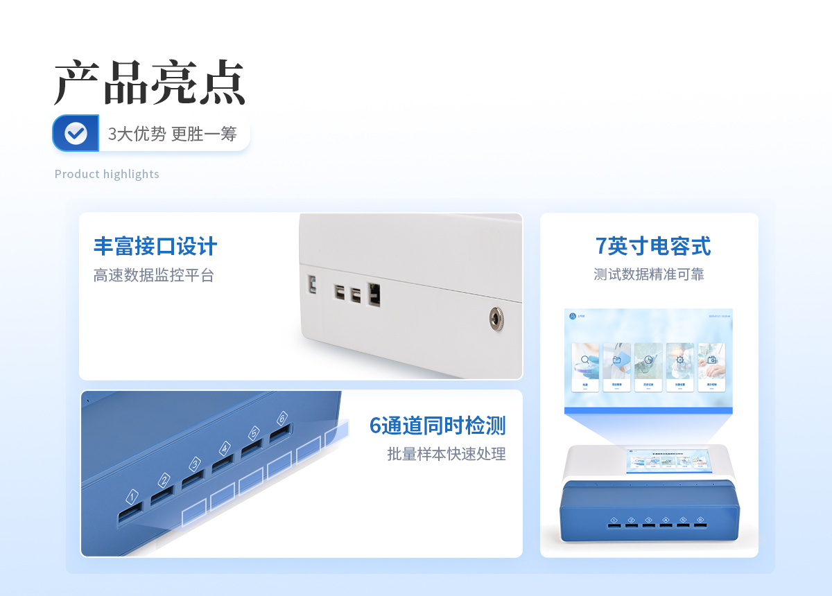 | 1、 手持式設計,電池供電,緊湊輕便,兼顧移動檢測需求 | 2、 Android4.4系統(tǒng),界面友好,操作簡單流暢,無需外接設備; | 3、 8G超大容量內存,支持按日期靈活查詢、預覽、刪除結果,并生成多樣化專業(yè)報告。 | 4、 高精度光學系統(tǒng):采用特定波長光源和光電傳感器,減少環(huán)境光干擾。 | 5、 二維碼掃描錄入樣本信息,避免人工錯誤 | 6、 內置熱敏打印機,檢測完成即可現(xiàn)場打印標準報告,提升工作效率。 | 7、 關鍵部件實時自診斷功能,保障儀器長期穩(wěn)定運行。 | 8、 無線網(wǎng)絡及藍牙,構建完善的數(shù)據(jù)監(jiān)控平臺,實現(xiàn)數(shù)據(jù)實時上傳、遠程查詢、統(tǒng)計分析和監(jiān)管協(xié)同。 | 9、 通道內置孵育模塊,為特定試紙條反應提供**溫度環(huán)境。 | 10、 支持多種品牌/類型的金標試紙條 | 11、 內置質控功能,可設備送檢、設備自檢、試劑卡自檢 | 12、 檢測方式:孵育檢測、即時檢測(對檢測數(shù)據(jù)復檢核實) | 13、 檢測曲線:可以對試劑卡的檢測核驗,防止誤判。 | 14、 檢測結果:報告出檢測項目、被測物質的結果、檢測單位、被檢查單位、檢驗員、檢測時間、檢測限等信息可在觸摸屏上顯示,可通過儀器內置打印機輸出 | 15、 項目管理:支持項目拓展 | 16、 界面設置:可修改標題和頁尾信息,靈活展示儀器信息 |