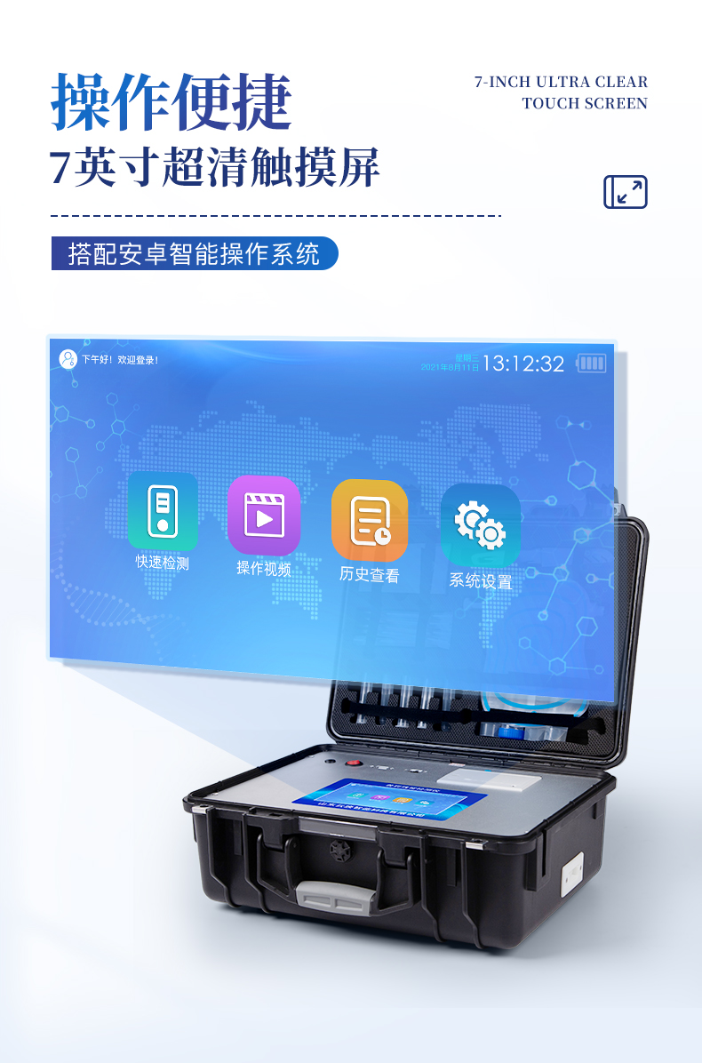 6、一體化便攜式快檢設備,滿足現場及流動檢測使用需求,能夠在同一軟件下實現所有檢測項目的檢測,并可通過同一窗口直觀顯示檢測結果。