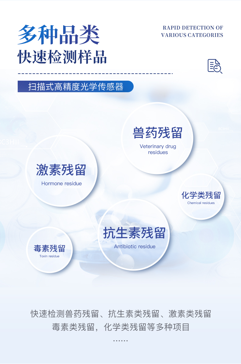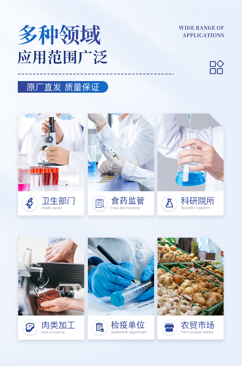 該氯霉素快速檢測系統設備為集成化食品安全快速檢測分析設備,廣泛應用于養殖場、屠宰場、食品肉產品深加工企業、檢驗檢疫部門、食藥監局、衛生部門、高教院校、科研院所、農業部門等單位使用。