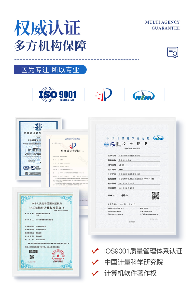7、內置新國家限量標準,與所測結果進行現場比對,并持續更新標準。