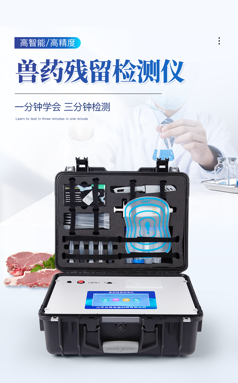 水產品氯霉素快速檢測儀可快速檢測肌肉組織(魚、蝦等水產類)中的氯霉素殘留,氯霉素快速檢測卡整個檢測過程只需要30分鐘左右, 靈敏度為 0.3 μg/kg (ppb),該設備還可應用于四環素類、硝基呋喃類、磺胺類、沙星類、孔雀石綠等快速檢測。