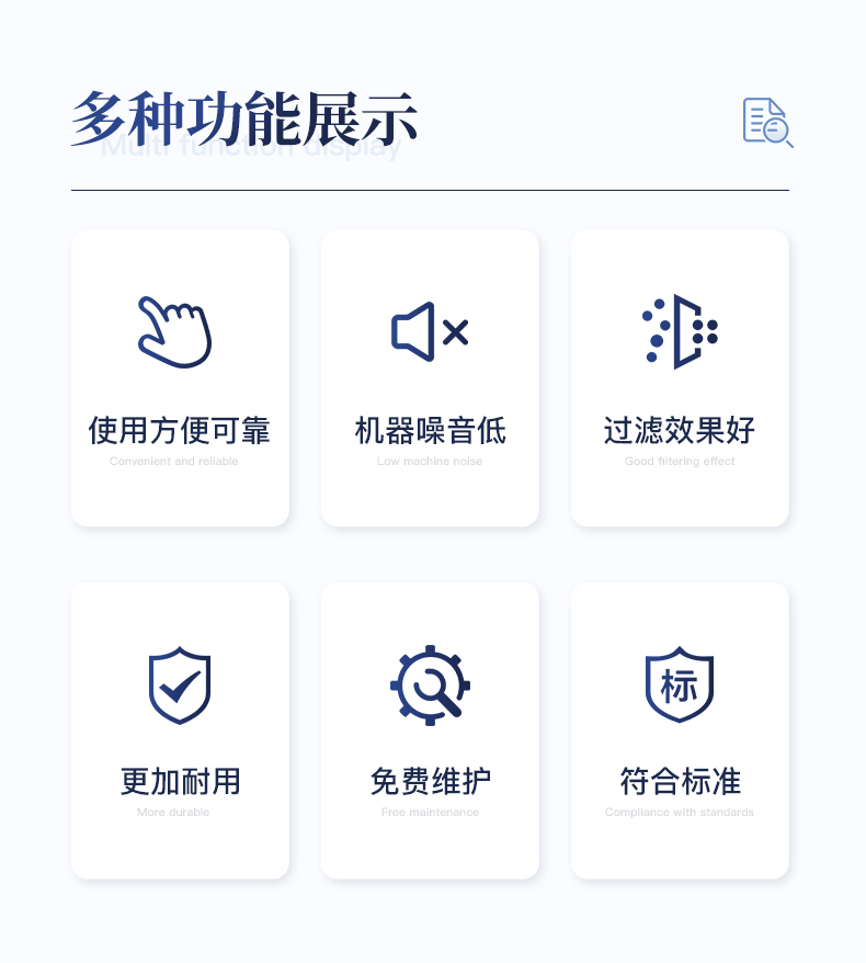 | 1.使用方便、可靠。 | 2.過濾后奶液可繼續用于生產,降低成本。 | 3.噪音低,過濾效果好。 | 4.免維護設計,避免皮帶維護麻煩。 | 5.耗材成本低。 | 6.改進電機,更耐用。 | 7.配套齊全,使用便捷。 |