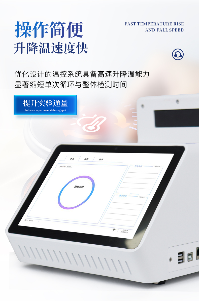 | 1.智能操作系統(tǒng),實(shí)驗(yàn)盡在掌握 | A程序更新與預(yù)設(shè):支持在線更新實(shí)驗(yàn)程序,并內(nèi)置豐富的預(yù)設(shè)實(shí)驗(yàn)程序模板,用戶亦可自定義保存常用模版,實(shí)現(xiàn)一鍵快速啟動,極大提升操作效率。 | B極簡啟動體驗(yàn)(可選配):可定制集成攝像頭掃描系統(tǒng),用戶只需掃描樣品板或程序卡的二維碼,即可自動識別并調(diào)用對應(yīng)實(shí)驗(yàn)程序,簡化流程,避免人為設(shè)置錯誤。 | C操作簡單:觸摸屏界面設(shè)計(jì)得直觀易懂,新用戶也能快速上手。預(yù)置常用程序模板,進(jìn)一步簡化操作流程。 | 2.精準(zhǔn)穩(wěn)定的溫控與光學(xué)核心 | A長久精準(zhǔn)的溫控系統(tǒng):采用進(jìn)口***TEC半導(dǎo)體制冷模塊,控溫精準(zhǔn)(±0.1°C),孔間溫度均勻性**(≤±0.3°C)。系統(tǒng)穩(wěn)定性卓越,長期使用性能衰減小,校準(zhǔn)周期長達(dá)數(shù)年,顯著降低維護(hù)成本與運(yùn)營中斷。 | B免維護(hù)的靈敏光學(xué)系統(tǒng):配備2個獨(dú)立LED光源與2個獨(dú)立光電二極管檢測器,實(shí)現(xiàn)雙通道熒光同步精準(zhǔn)檢測。采用超長壽命進(jìn)口光源,設(shè)計(jì)壽命期內(nèi)免維護(hù),無需額外校準(zhǔn)或更換,保障檢測結(jié)果長期一致性與高靈敏度。 | C卓越的數(shù)據(jù)質(zhì)量:實(shí)驗(yàn)線性相關(guān)性高(R2≥0.999),重復(fù)性優(yōu)異(孔間CV值低),確保定量結(jié)果準(zhǔn)確可靠,數(shù)據(jù)置信度高。 | 3.**便捷的數(shù)據(jù)與輸出管理 | A多重?cái)?shù)據(jù)導(dǎo)出方式:支持通過USB存儲設(shè)備直接拷貝,或經(jīng)由Wi-Fi無線網(wǎng)絡(luò)傳輸數(shù)據(jù)至本地服務(wù)器或云端,方便靈活,滿足各類實(shí)驗(yàn)室數(shù)據(jù)管理習(xí)慣。(可選配) | B豐富的報(bào)告導(dǎo)出與打印:支持生成并導(dǎo)出多種格式(如PDF、Excel)的實(shí)驗(yàn)報(bào)告。儀器兼容USB熱敏打印機(jī)、藍(lán)牙無線打印機(jī)及常規(guī)A4打印機(jī),可直接在儀器上或通過電腦一鍵導(dǎo)出并打印專業(yè)報(bào)告,便于結(jié)果存檔與即時分享。 | 4.快速**與堅(jiān)固耐用 | A升降溫速度快:優(yōu)化設(shè)計(jì)的溫控系統(tǒng)具備高速升降溫能力,顯著縮短單次循環(huán)與整體檢測時間,提升實(shí)驗(yàn)通量。 | B超長使用壽命:核心部件均選用工業(yè)級耐用材料與設(shè)計(jì),整機(jī)運(yùn)行穩(wěn)定可靠,致力于為用戶提供長久的投資回報(bào)。 |