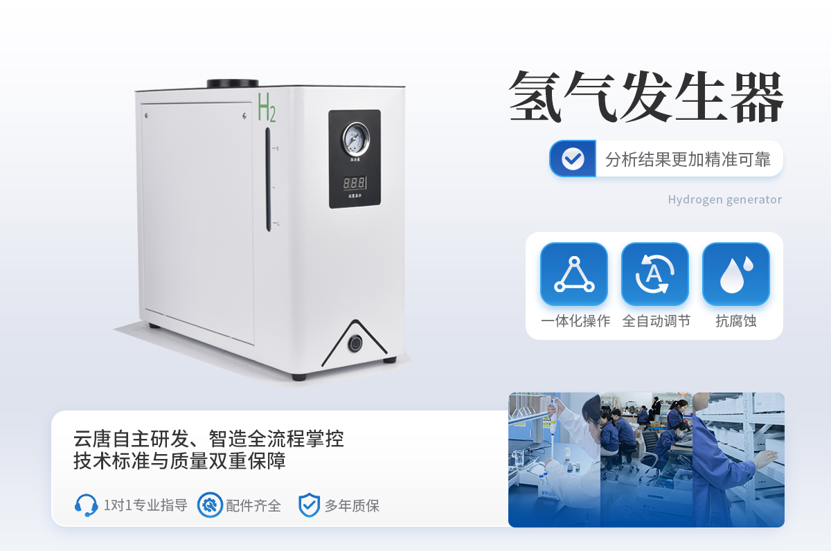1、壓力、流量自動顯示,自動恒壓、恒流、氫氣流量可根據用量實現全自動調節。 2、FV型亞克力過濾器,內有微量氧脫除劑(不需要活化),氫氣純度更高;儀器內部采用硅橡膠圈(含硫量低),有效提高氣體質量,保證色譜基線平穩。 3、儲液、電解制氫、排氧一體化,池溫低,壽命長久。 4、配有安全裝置,靈敏可靠,自動防返堿。