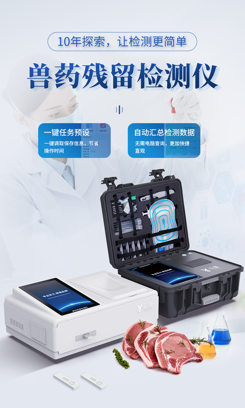 山東云唐智能科技有限公司生產(chǎn)的高智能食品安全檢測(cè)儀為集成化食品安全快速檢測(cè)分析設(shè)備,采用臺(tái)式一體化設(shè)計(jì),可快速檢測(cè)200多種食品安全項(xiàng)目,包含非食用化學(xué)物質(zhì)、濫用食品添加劑、農(nóng)藥殘留、獸藥殘留、重金屬、病害肉、營(yíng)養(yǎng)強(qiáng)化劑、抗生素類殘留、激素類殘留、真菌毒素類殘留、化學(xué)類殘留等項(xiàng)目的定性定量檢測(cè)。目前廣泛應(yīng)用于市場(chǎng)監(jiān)管局、檢測(cè)中心、衛(wèi)生監(jiān)督部門、農(nóng)業(yè)部門、院校及各單位食堂、食品肉產(chǎn)品深加工企業(yè)、商超市場(chǎng)、司法部門、餐飲機(jī)構(gòu)、養(yǎng)殖場(chǎng)、屠宰場(chǎng)、檢驗(yàn)檢疫部門等單位。