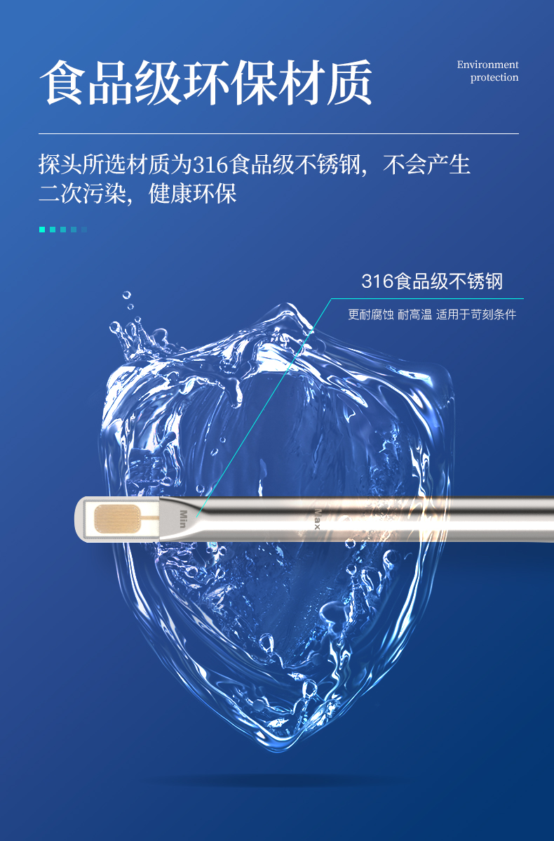 ■沒有二次污染 探頭所選材質均為食品級環保材質,不會產生二次污染