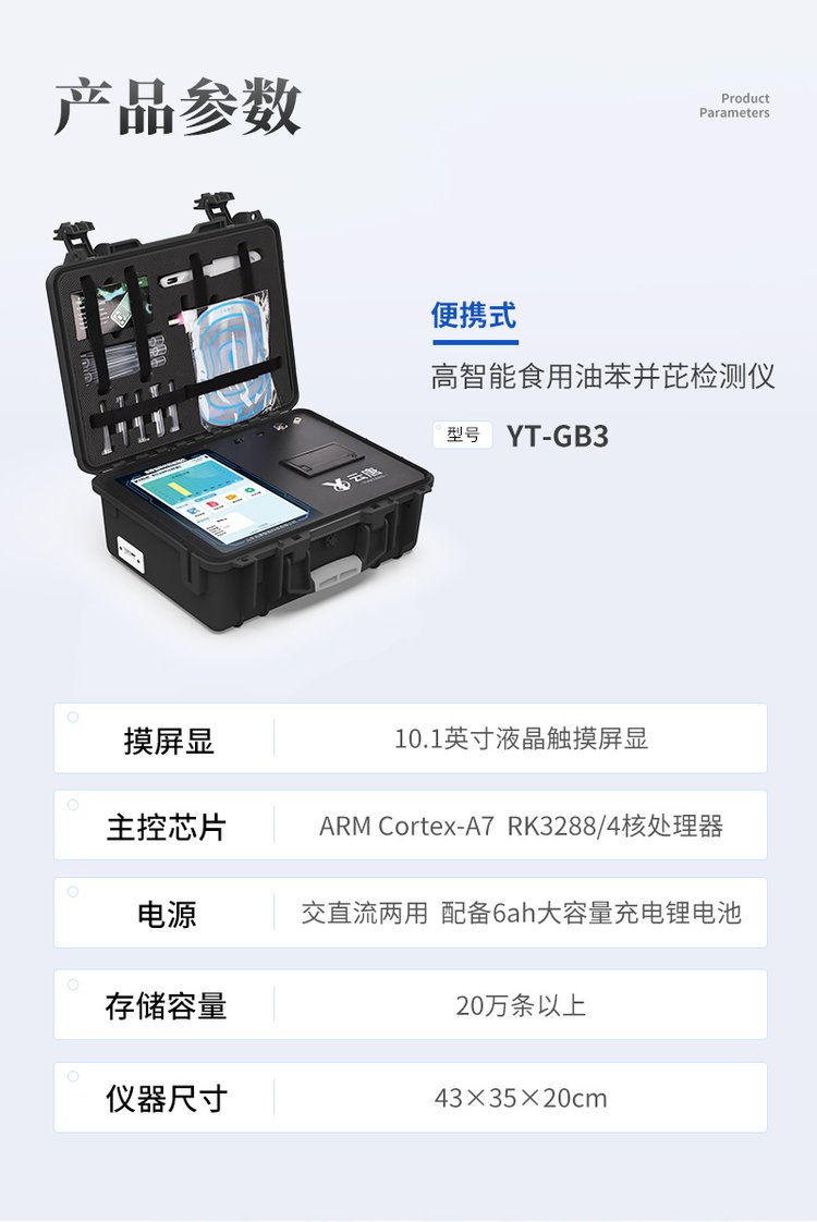 山東云唐智能科技有限公司生產的高智能苯并芘檢測儀可快速檢測食用油、芝麻油中的苯并芘含量是否超標,通過快速、簡捷、**的處理方法,采用免疫競爭法分析原理,可以確定樣品中是否含有苯并(a)芘,準確度高,為各行業的用油安全提供相應保障。