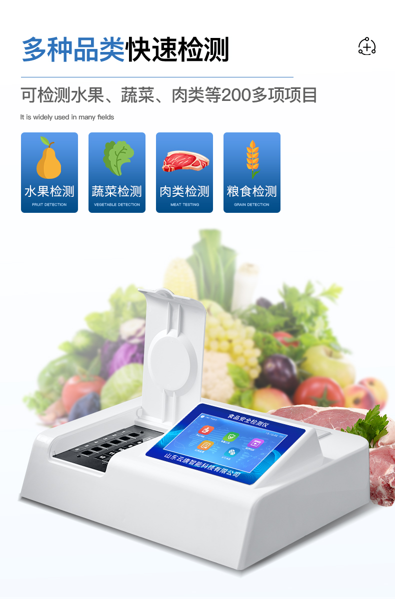 該多功能食品安全檢測儀為集成化食品安全快速檢測分析設備,廣泛應用于食藥監局、衛生部門、高教院校、科研院所、農業部門、養殖場、屠宰場、食品肉產品深加工企業、檢驗檢疫部門等單位使用。