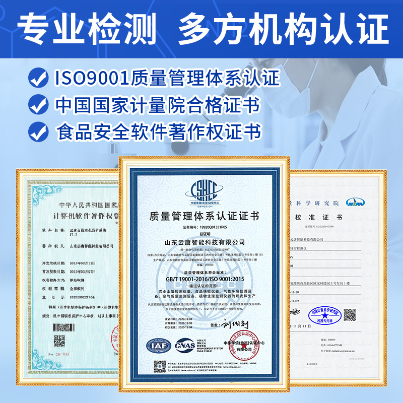 | 1. 靈敏度:1CFU/mL(g) | 2. 量程:1~9 × 109CFU/mL 或CFU/g | 3. 特異性:99.999% | 4. 波長范圍:400~680nm | 5. 軟件兼容操作系統:Windows XP、Vista、7/8/10 | 6. 尺寸:≤ 31x17,5x8 cm (W x L x H) + 適配器 | 7. 重量:≤ 1.28kg+ 適配器 |