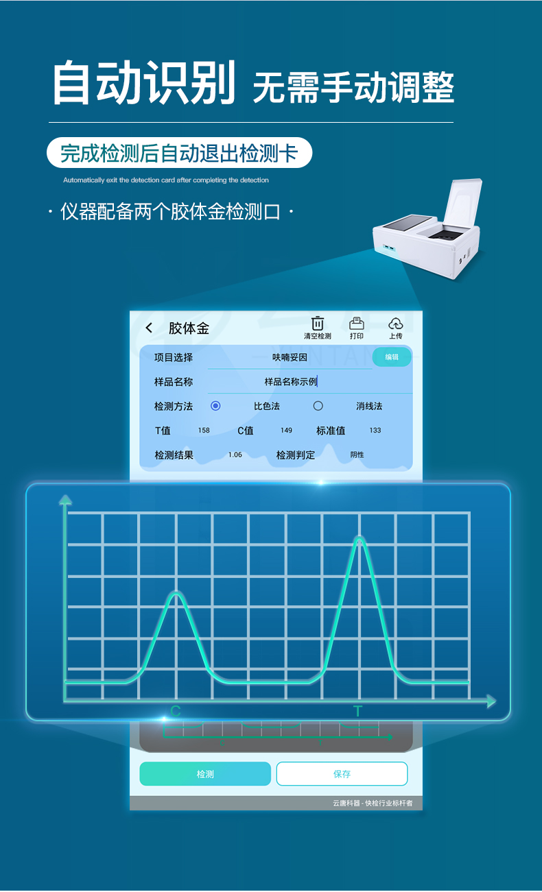 儀器采用臺式一體化系統檢測技術,將分光光度模塊、膠體金檢測模塊、新型農殘檢測模塊、數字化管理模塊、無線通訊模塊高度集成于一體,支持檢測200種食品安全檢測項目,同時預留升級檢測方法。儀器檢測模塊標準化、智能化,可隨意自由組合。檢測箱體內置多個標準檢測單元,檢測模塊可以調整配置。顯示屏幕:儀器采用10.1英寸豎向液晶觸摸屏顯,搭配運行安卓智能操作系統,主控芯片采用ARM Cortex-A7,RK3288/4核處理器,主頻1.88Ghz,操作方便,性能更強。檢測通道:≥12通道;采用精密旋轉比色池設計,使用同芯片同光源校準精度,解決不同光源之間的誤差值。1-12通道間誤差0.1%。(***:**202022821055.2)儀器光源:高精度進口四波長冷光源,每個通道均配置 410、520、590、630nm 波長光源,標配**的光路切換裝置,專利光路切換功能可實現64波長,并且所有檢測項目可實現所有通道同時檢測。設備可一鍵校準,自動保存校準數據,自動對比校驗,得到精準光源,采用Android SP存儲數據,光源數據永不丟失,方便每一次使用。通訊接口: 配備無線通信模塊、可選配4G(APN)通訊模塊和藍牙傳輸,同時具有雙USB接口以及RJ45網線接口,可以多方式實現數據保存及數據傳輸。存儲方式: 支持U盤存儲,標準USB接口,免驅動安裝。檢測結果存儲容量20萬條以上,可生成Excel表格進行拷貝,并具有登錄保護功能。智能化操作系統:操作系統:儀器可在同一檢測界面自動對應相關檢測通道,一次性選擇1-12個樣品名稱,無需退出界面,節省操作時間。并可以對每個通道屬性和樣品信息單獨進行編輯,例如送檢單位、人員,檢測人員等,打印時勾選打印顯示。數據集成系統:設備首頁自動匯總分析檢測數據,包含:周檢測數據、月檢測數據,全部檢測總數量,均包含檢測總數,合格數,不合格數,以及相關柱形分析圖,各項檢測數據一目了然,無需電腦查詢,更加快捷直觀。數據庫系統:十幾項數據庫分類管理儀器:包含項目類型、項目數據、檢測數據、歷史記錄、國標信息、曲線信息、采樣信息、檢測信息、受檢信息、復核信息、圖表信息、光源校準信息、打印樣式信息、樣品庫信息等等,數據庫之間互相協調聯動保證數據的真實完整性。同時產品數據庫以及歷史檢測記錄支持一鍵檢索功能。限量規判系統:具有限量查詢、添加物質合規判定系統。檢測出結果后,系統自動調用系統數據庫中相關國標進行比對判定,客觀顯示判定結果是否合格。項目預設系統:儀器具有任務預設模塊,一鍵提前預設,給出方便快捷的新檢測方案,每一個任務分別可以設置不同的樣品、批次、編號、來源、備注、抽樣信息、檢測信息、受檢信息、復核信息等更多信息。樣品送檢時一鍵調取保存信息,并可多次調取,大大提高檢測效率。數據監管系統:同步對接監管平臺,數據可局域網和互聯網數據上傳,檢測結果可選擇直接傳至食品安全監管平臺。進行區域食品安全監管及大數據分析處理與數據統計,檢測區域食品安全長短期動態,達到食品安全問題預估、預警。打印系統:內置全新打印機,新創自定義打印方式,可按需靈活勾選控制:產品合格證(國家農業部標準要求),二維碼,抽樣信息、檢測信息,受檢信息、復核信息、抽樣日期、檢測日期等信息的打印。供電模式:儀器交直流兩用,直流12V供電,可連接車載電源,可配6ah大容量充電鋰電池,電量可實時顯示,方便戶外流動測試。膠體金檢測模塊:采用單通道CMOS成像處理技術及膠體金免疫層析技術,可讀取膠體金卡數據,自動采集、處理分析,將檢測結果顯示,并可根據參考限值自動判斷檢測結果,可檢測常見的獸藥殘留、生物毒素、抗生素、違禁添加物等。探測技術:CMOS成像探測;檢測通道:1個通道;檢測方式:消線法和比色法;顯示模式:陰性或陽性;曲線形式:直插式掃描方式,顯示金標卡圖像,實時生成、識別CT曲線圖,無需手動調整,完成檢測后自動退出檢測卡。兼容市場上其他金標卡,使用耗材不受限制。儀器具備遠程升級功能,可定向分客戶分儀器更新,開機后自動更新,并可持續性免費更新系統版本,無需像傳統產品返廠更新,節省時間及人力成本并避免了物流運輸返廠升級導致設備損壞的潛在風險。