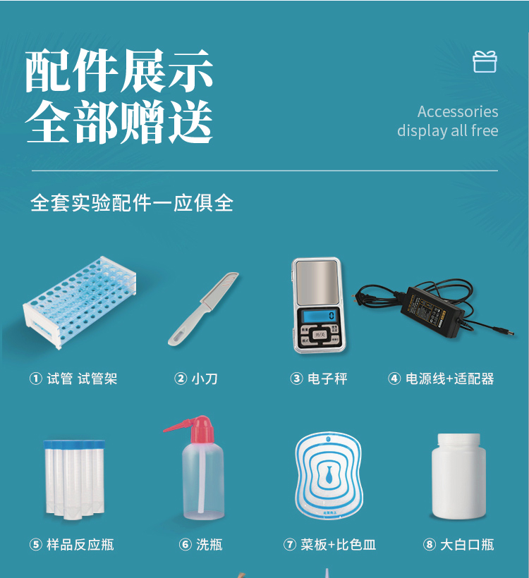 供電方式:交直流兩用,直流 12V 供電,可連接車載電源,可配 6ah 大容量充電鋰電池,方便戶外流動測試。顯示方式:7英寸液晶觸摸屏顯示,人性化中文操作界面,讀數直觀、簡單。檢測通道:8個檢測通道,可以同時測試多個樣品,循環檢測,即放即檢,每個樣品由程序控制分別獨立工作,不會互相干擾。高精光源系統: