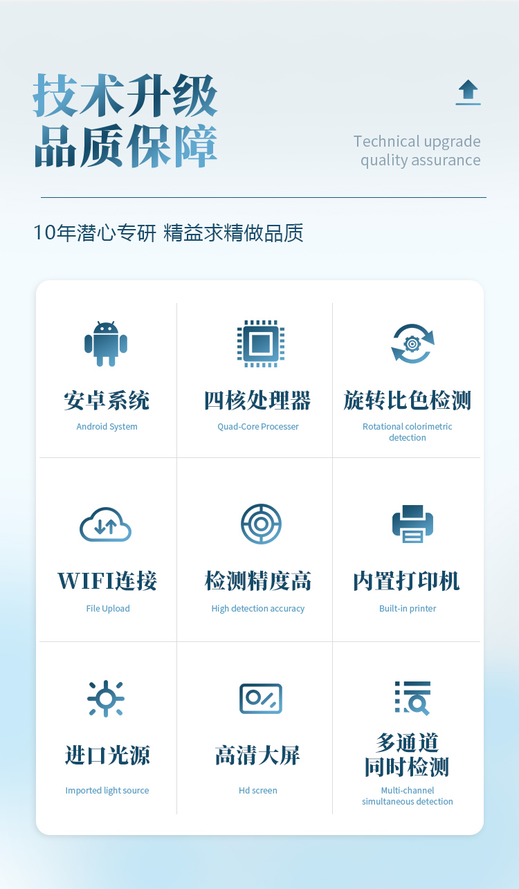 *儀器采用精密旋轉(zhuǎn)比色池設(shè)計,使用光源一致,可以解決各通道間由于光源誤差帶來的檢測結(jié)果誤差問題,檢測結(jié)果更加精準(zhǔn)。
