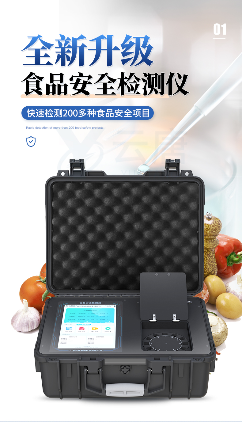 山東云唐智能科技有限公司生產的高智能食品安全檢測儀為集成化食品安全快速檢測分析設備,采用臺式一體化設計,可快速檢測200多種食品安全項目,包含非食用化學物質、濫用食品添加劑、農藥殘留、獸藥殘留、重金屬、病害肉、營養強化劑、抗生素類殘留、激素類殘留、真菌毒素類殘留、化學類殘留等項目的定性定量檢測。該高智能食品安全檢測儀為集成化食品安全快速檢測分析設備,目前已于食藥監局、衛生部門、高教院校、科研院所、農業部門、養殖場、屠宰場、食品肉產品深加工企業及檢驗檢疫部門等單位廣泛使用。