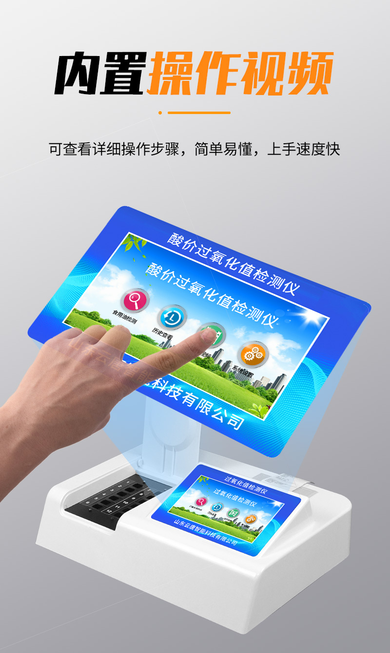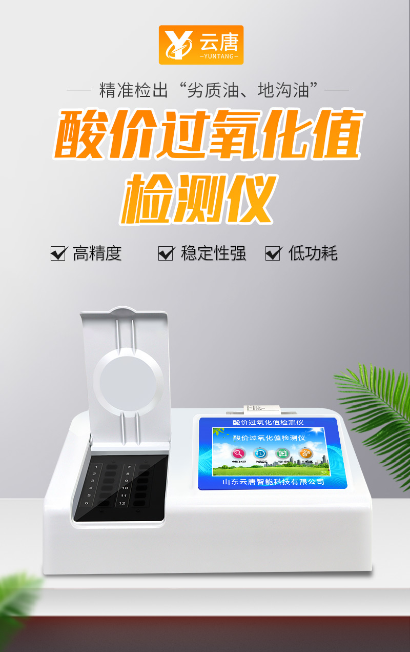 食用油過氧化值檢測儀為集成化油品快速檢測分析設備,能夠快速檢測食用植物油、食用豬油、花生油、葵花油、米糠油、食品、肉制品中的過氧化值含量;通過檢測可確定植物油是否符合國家標準或是否為劣質油、地溝油等。儀器預留其他項目檢測程序和端口,根據日后需求可方便的自主增加檢測項目。日后可升級為檢測水產品、面制品的綜合類型儀器。