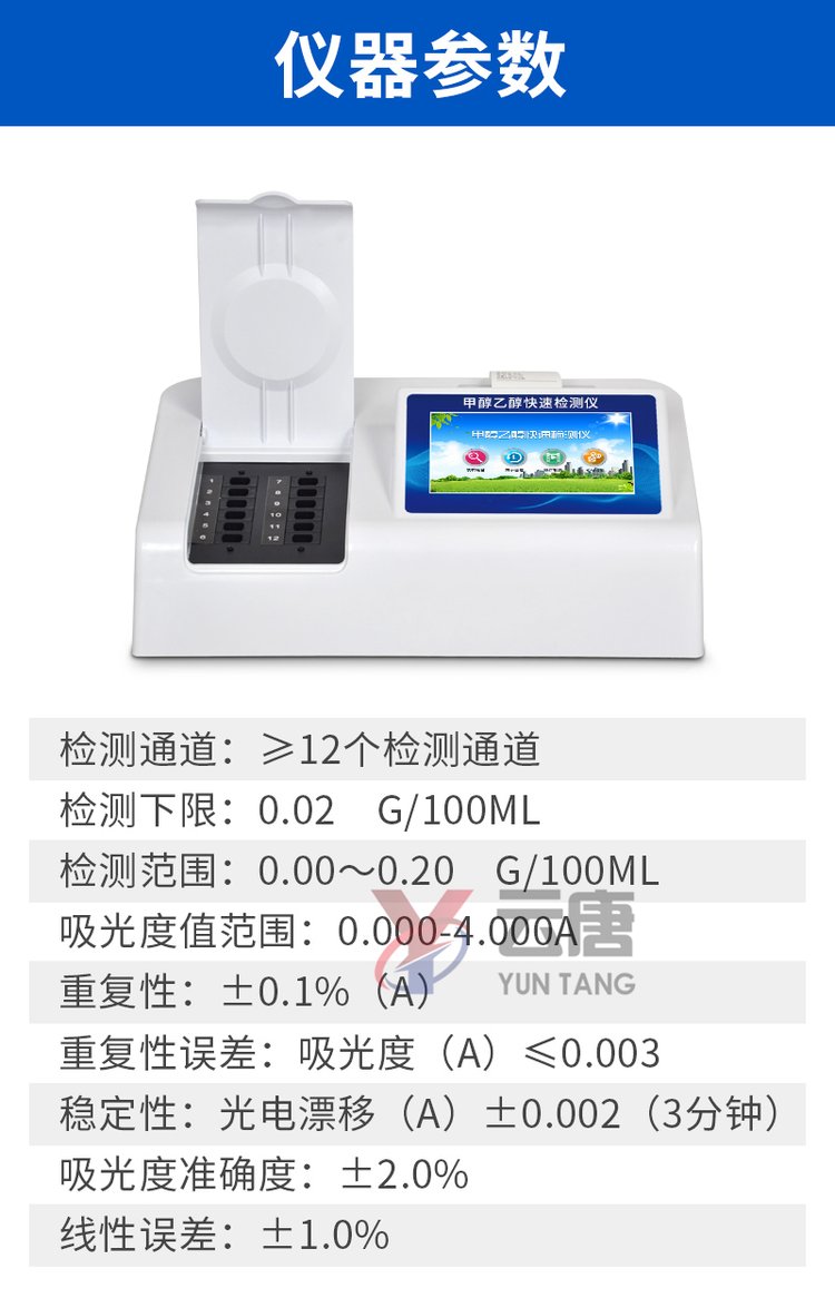 可快速定量檢測(cè)各類酒中的甲醇的含量,儀器預(yù)留其他項(xiàng)目檢測(cè)程序和端口,根據(jù)日后需求可方便的自主增加檢測(cè)項(xiàng)目。日后可升級(jí)為檢測(cè),水產(chǎn)品,肉制品,面制品的綜合類型儀器。