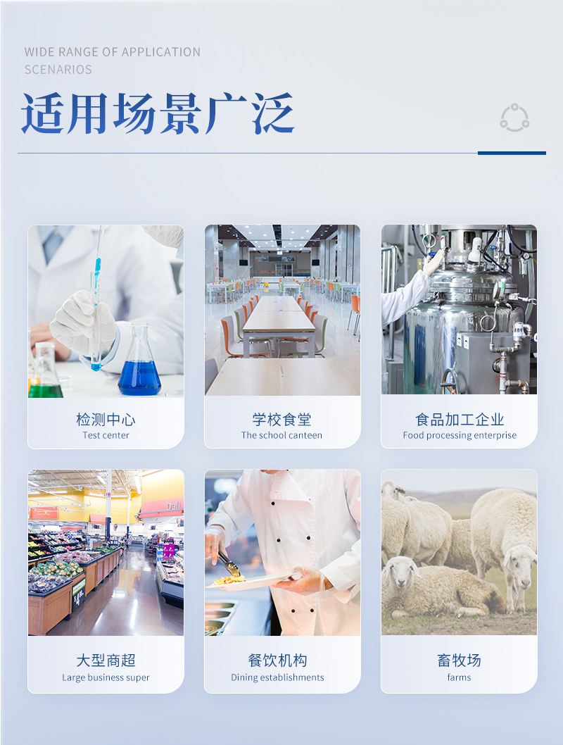 該病害肉檢測儀為集成化食品安全快速檢測分析設備,目前已于市場監管局、食品肉產品深加工企業、學校食堂、衛生部門、畜牧部門、屠宰場、檢驗檢疫部門等單位廣泛使用。