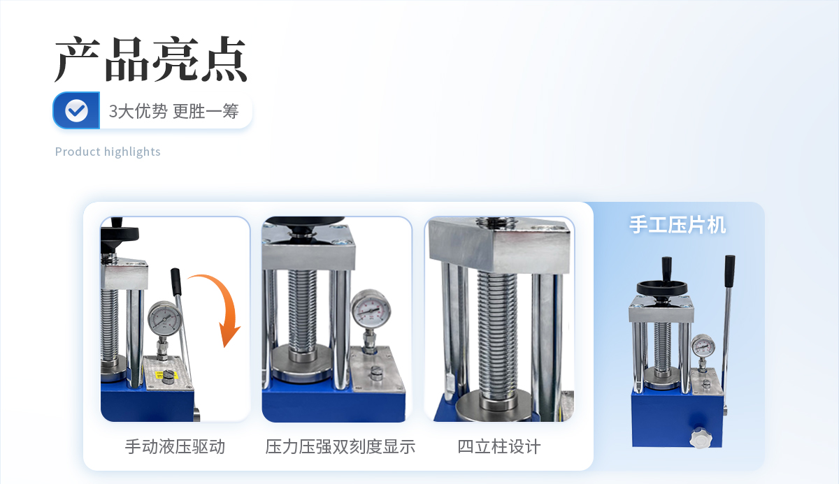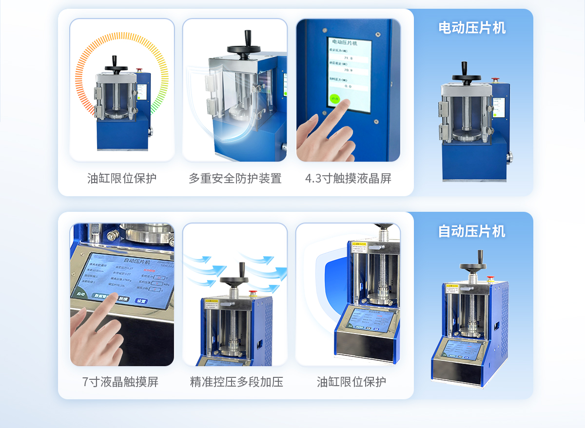 該機的優勢是壓力大、空間大,可操作性強,采用分體式結構,7寸觸摸液晶屏,自動化程序波段控制,操作界面可中英文互換,主要用于大規格模具在大壓力下的樣品制備;全系標配防彈玻璃防護罩,操作生產安全又放心。