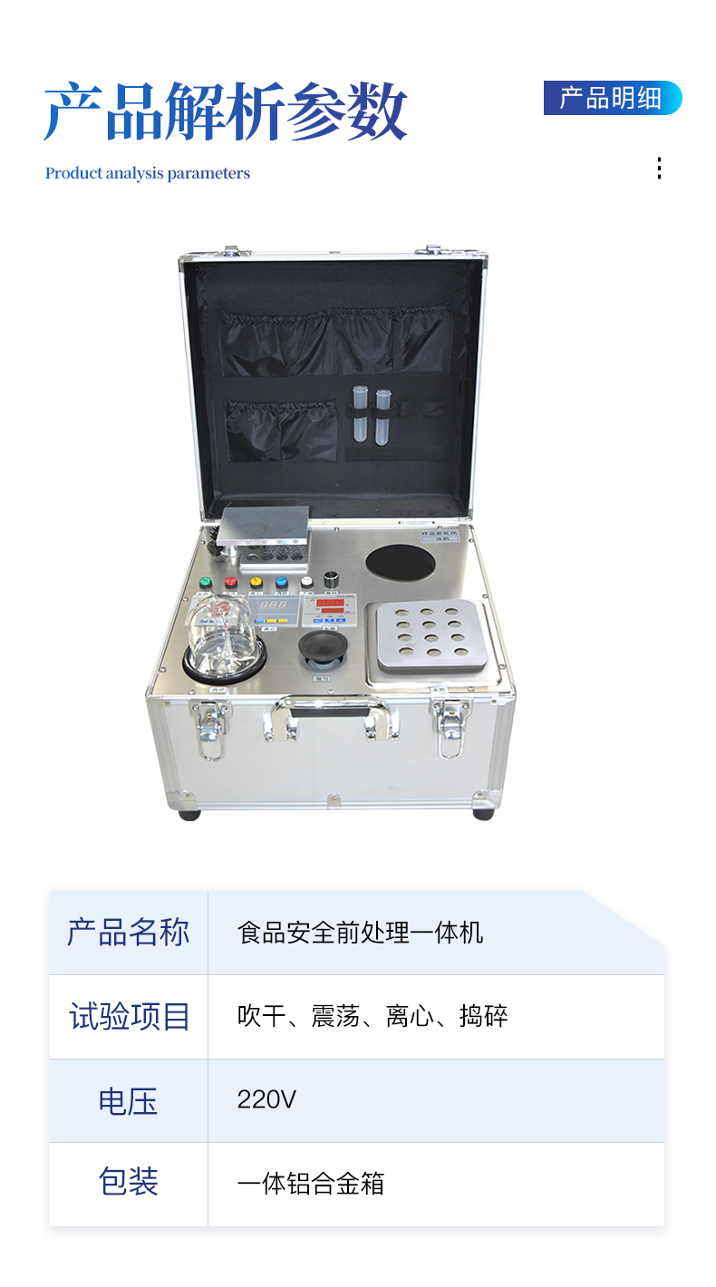 樣品前處理一體機1臺、帶氣孔支架1個、均質杯1個、說明書1份、產品合格證1份、電源線1條 離心機透明蓋一個